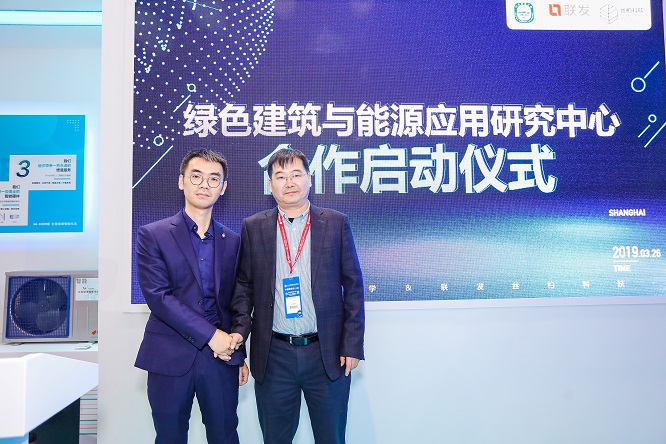 在當天的絲柏展館內,還誕生了一場“跨界”聯合——南京師范大學&聯發絲柏科技綠色建筑與能源應用研究中心合作啟動儀式暨W-HOME科技住宅AI舒適系統發布會。南京師范大學能源學院院長盧平、聯發絲柏科技總經理蘇曉翔等領導以及各路媒體、嘉賓們共同出席了此次活動。在合作致辭中,盧院長介紹到:“能源學院長期致力于科技住宅、輻射冷暖技術、清潔能源等領域的應用創新型人才培養和科學研究。能源學院與絲柏科技共建研究中心,通過共建實驗室、設立‘聯發人才項目’基金、設立‘聯發本科班’以及針對企業員工的‘聯發研修班’等舉措,優勢互補、資源共享,不僅將向行業輸送更多科技人才,更將共同探索校企產學研合作新模式,推動技術成果轉化以及行業的發展。“